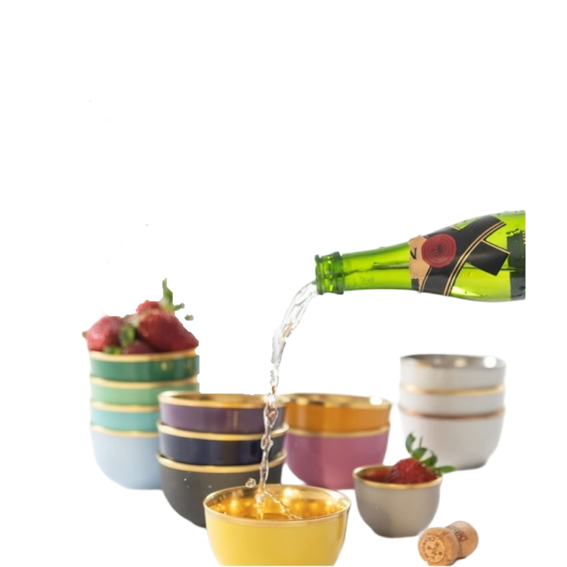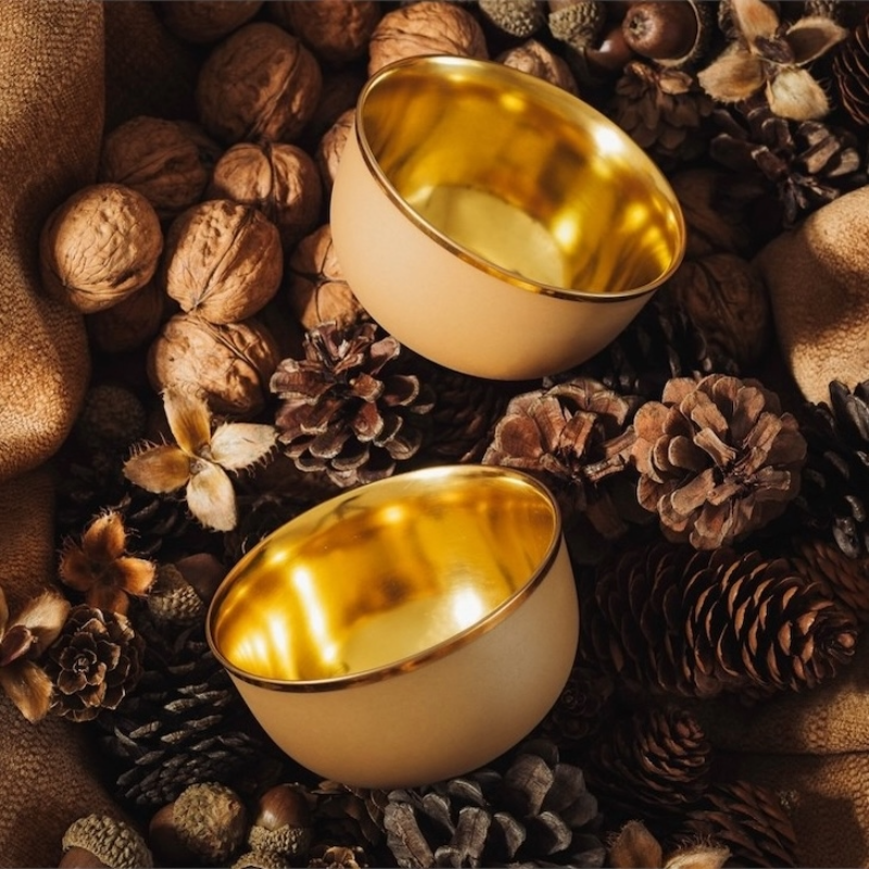 De fragiele champagnebowl is een must voor elke liefhebber van uitstekende mousserende wijnen en verfijnd design. Als symbool van extravagante smaak imponeert het gepolijste gouden decor niet alleen door zijn elegante uitstraling, maar benadrukt het ook de glans van de kommen. Augarten gebruikt hiervoor goud van de hoogste kwaliteit; de drankjes blijven heerlijk koel en de vorm van de champagnekom biedt een geheel nieuwe, sensuele drinkervaring.