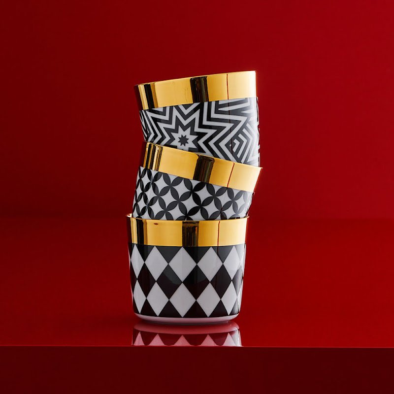 Porselein met vergulde rand en binnenzijde in 24 karaat, hooggepolijst goud