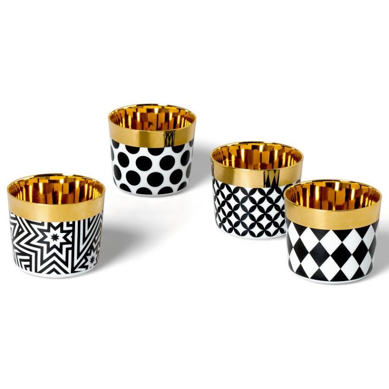 Een bijzondere beker gemaakt van het fijnste porselein (wanddikte 2 mm.) en sprankelend goud die niet alleen kan worden gebruikt voor cocktails, water en champagne, maar ook voor een bijzonder voorgerecht of een spectaculair dessert