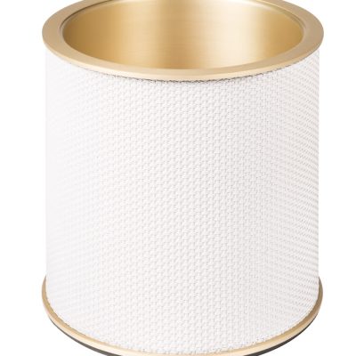 Deels met leer beklede, roestvrij stalen, isolerende basis.