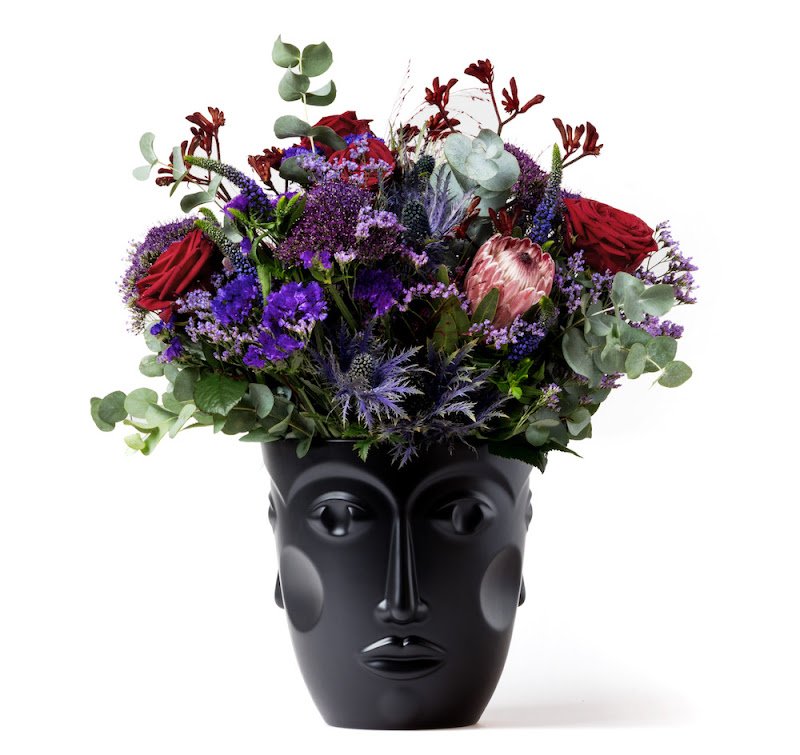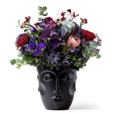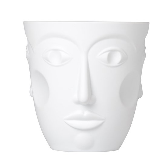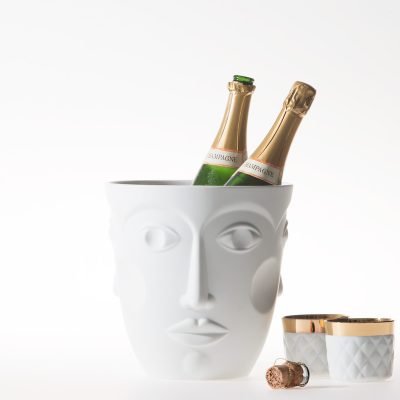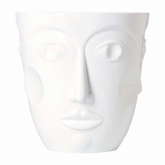 'Faces' presenteert vrouwelijkheid in artistiek vormgegeven porselein. Drie, in relief weergegeven gezichten smelten naadloos in elkaar over. De koeler is ideaal voor het presenteren van luxe dranken maar kan ook als vaas worden gebruikt