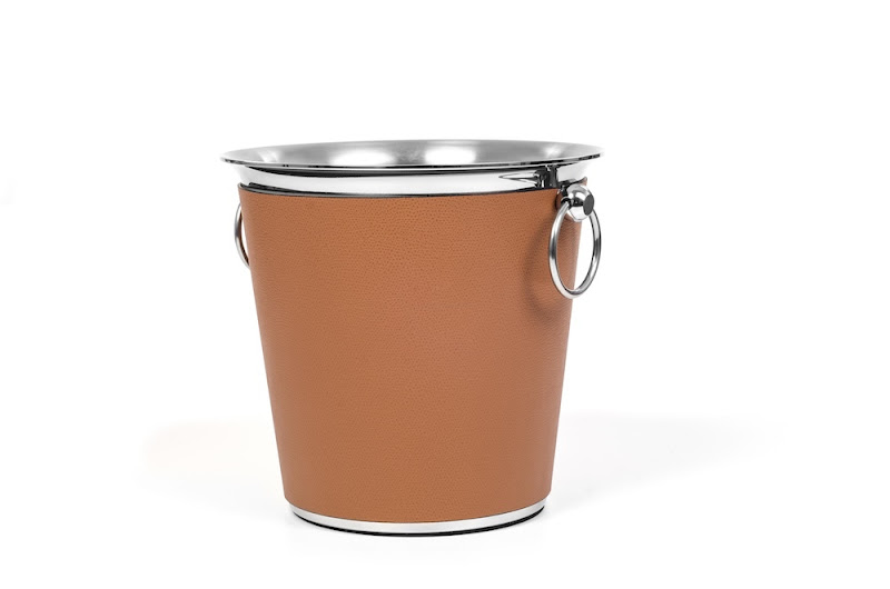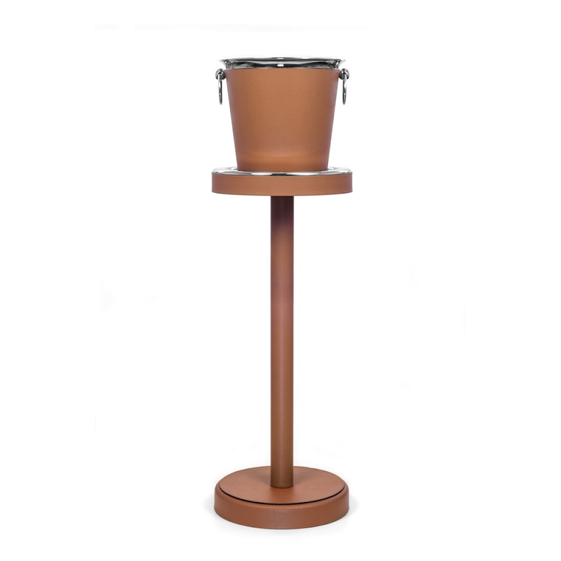 Wijn/Champagnekoeler staal, bekleed met leer