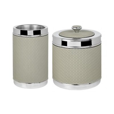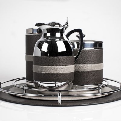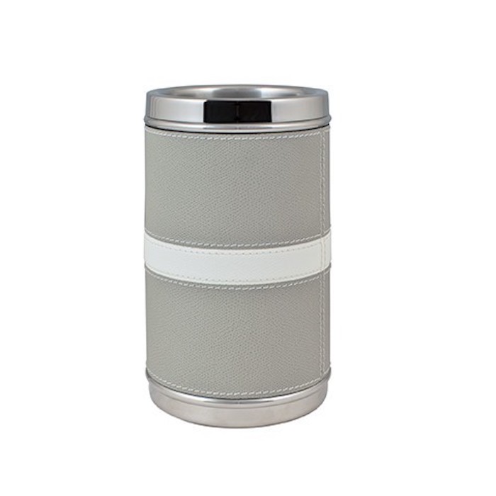Deels met leer beklede,isolerende wijnkoeler in verchroomd staal.