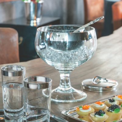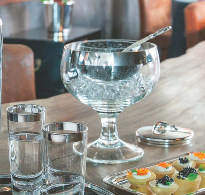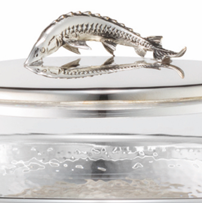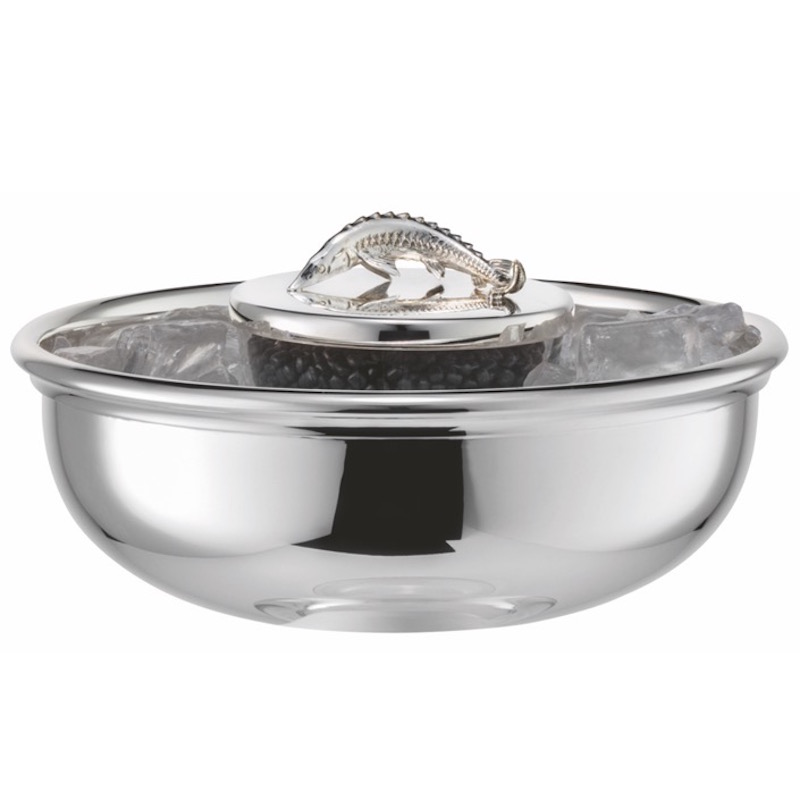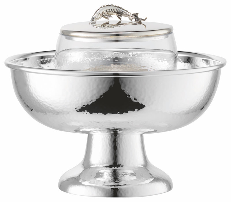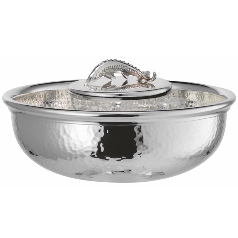 | Kaviaarschaal groot op voet gehamerd ‘Clarity’, Ø 19 cm, inzet Ø 10 cm, inhoud 250 g