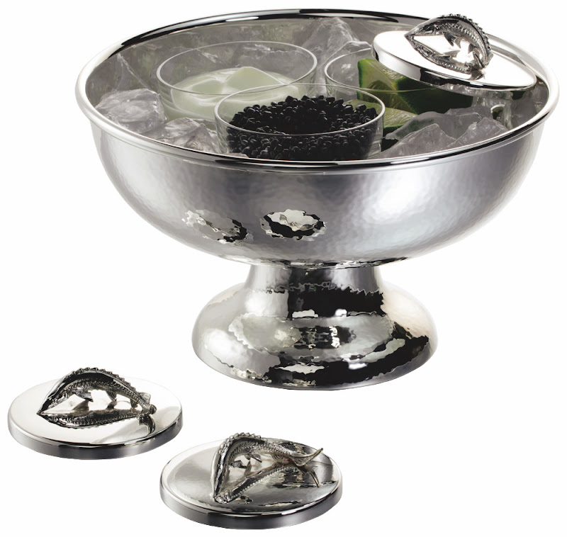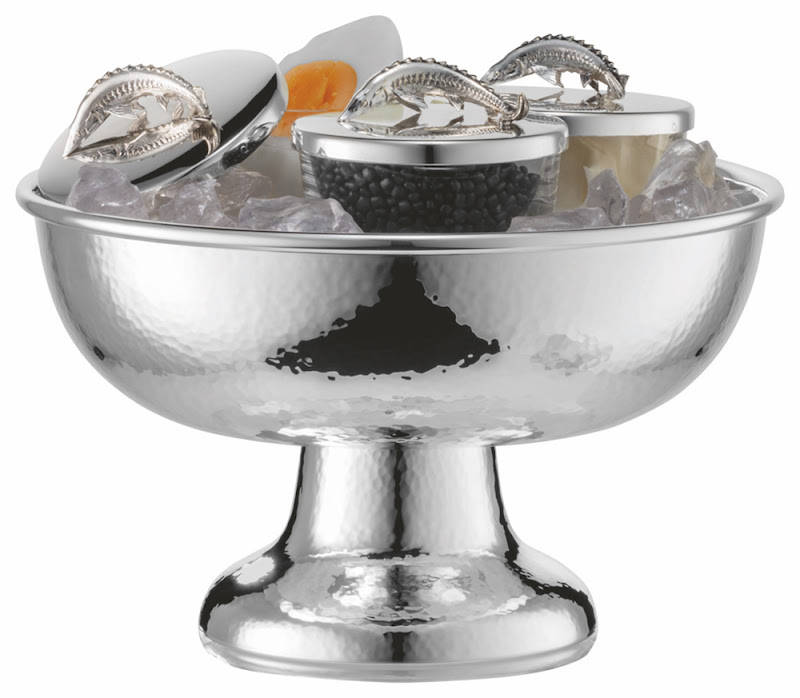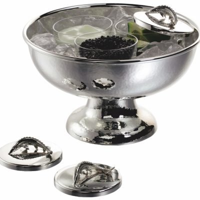 | Kaviaarschaal op voet met 3 inzet schaaltjes, gehamerd ‘Select’, Ø 19 cm