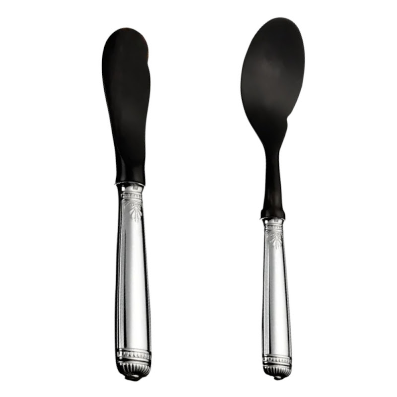 Kaviaar set verzilverd met kristallen inzet. Spreider en lepel verzilverd met hoornen spreider / lepelbak