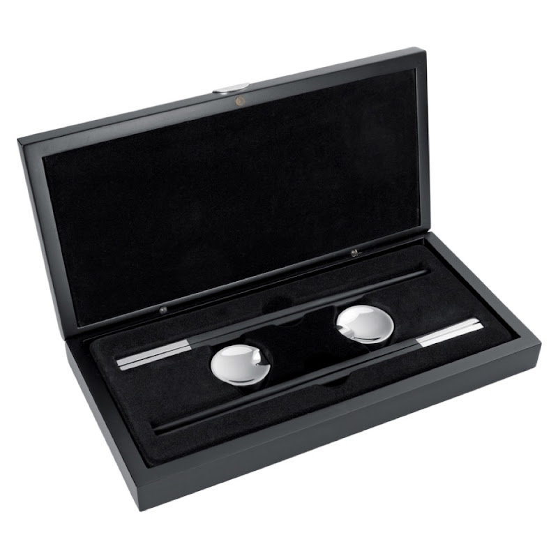 Set van 2 paar stokjes met 2 verzilverde houders in geschenkverpakking