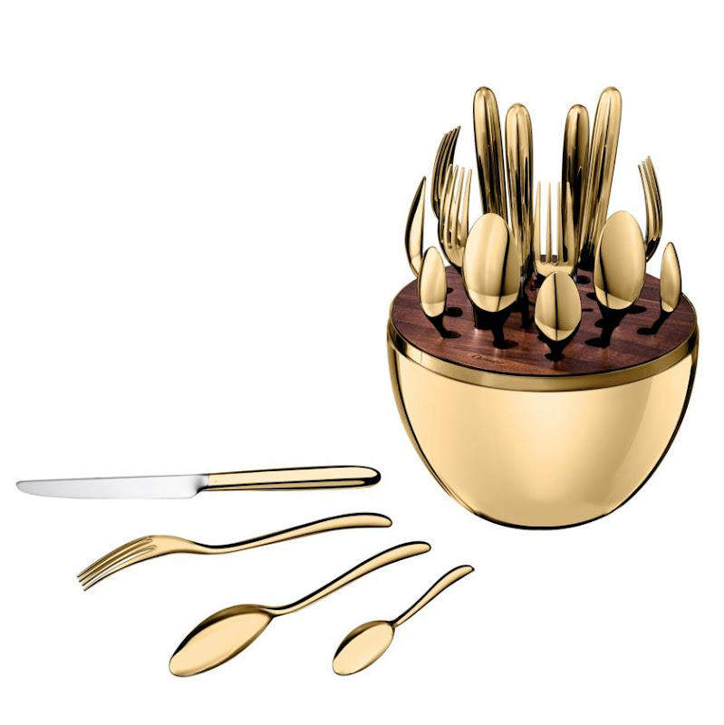 Vergulde 24 delige bestekset in staal-verguld opberg 'ei'