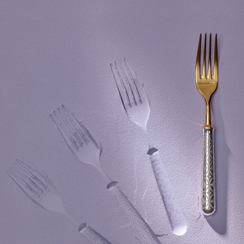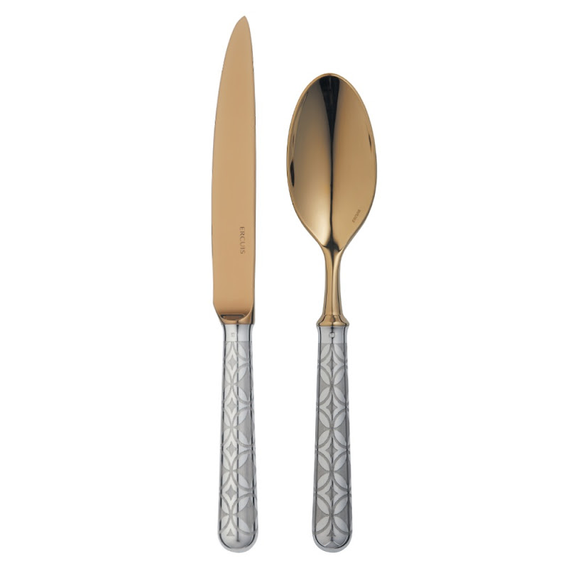 Verzilverd bestek, heften gedecoreerd met Guilloche techniek
