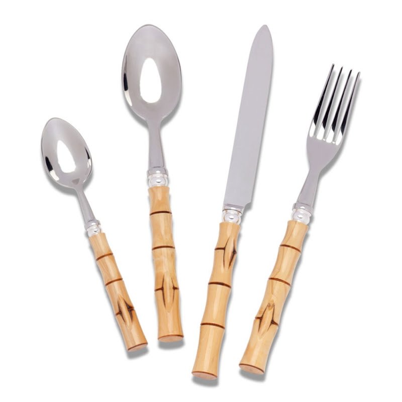 Verzilverd of edelstaal bestek met houten handvat