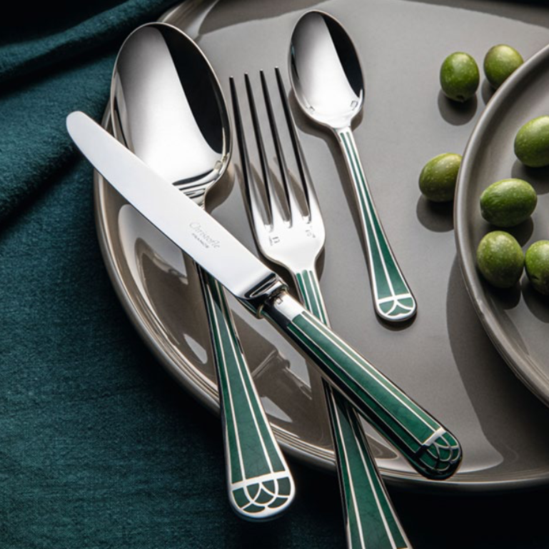 Hieronder wordt het bestek afgebeeld in zwart, maar er worden wel 67 verschillende kleuren gemaakt, zodat er altijd een perfecte match met ieder servies mogelijk is.