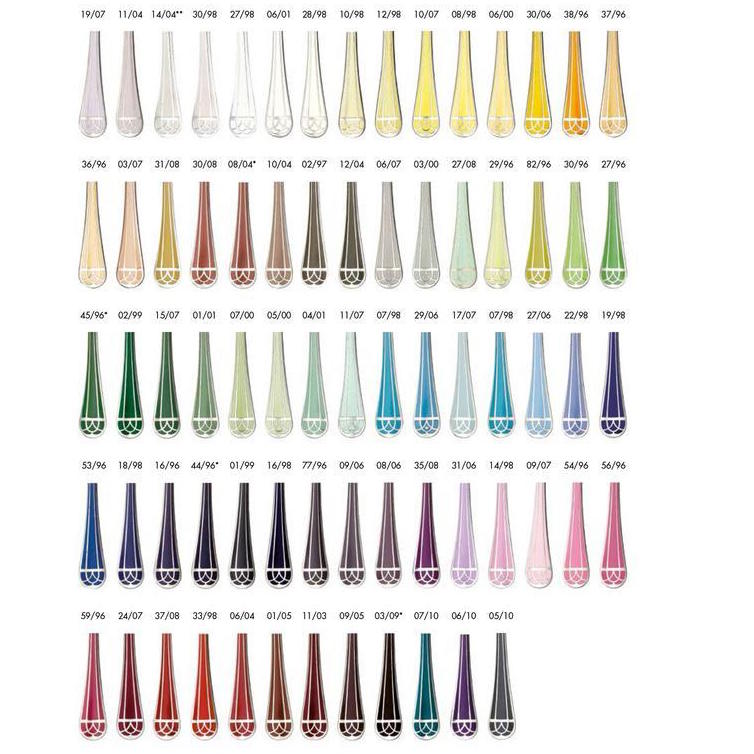 Hieronder wordt het bestek afgebeeld in zwart, maar er worden wel 67 verschillende kleuren gemaakt, zodat er altijd een perfecte match met ieder servies mogelijk is.