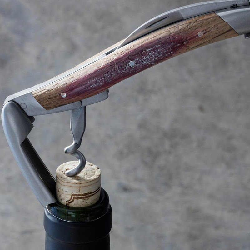 De spiraal van de kurkentrekker heeft 5 draaingen zodat ook lange kurken gemakkelijk uit de fles getrokken kunnen worden. Het lemmet van de capsulesnijder is scherp geslepen waardoor de capsule snel en makkelijk te verwijdern is. Het mes wordt geleverd in een elegant zwart leren etui