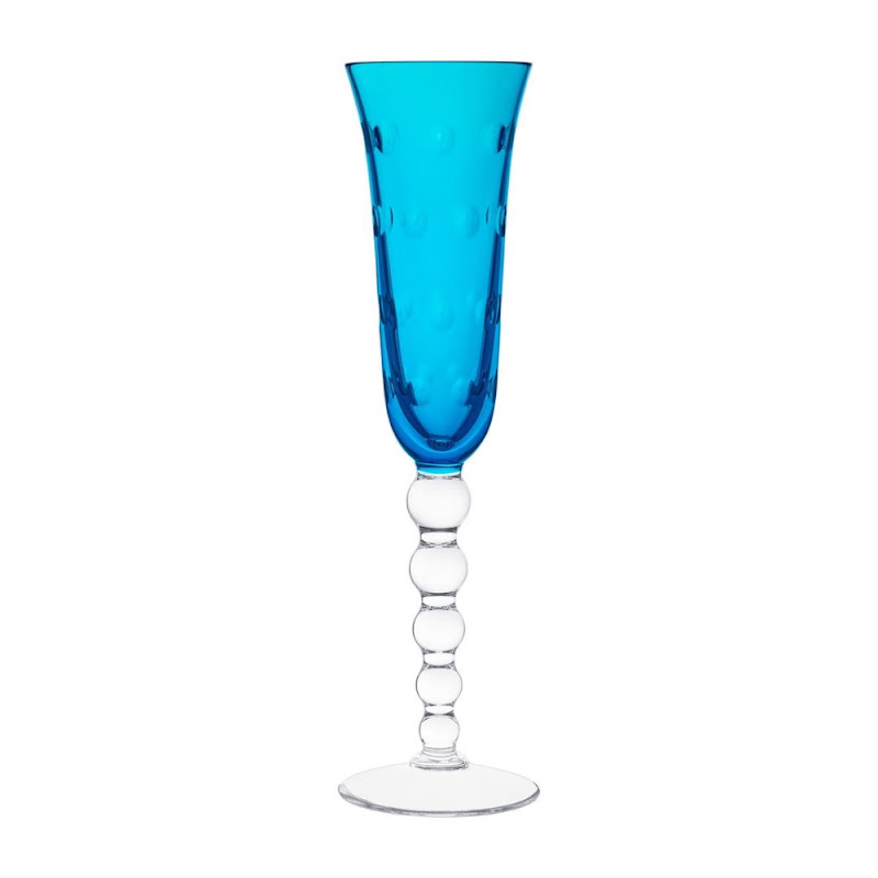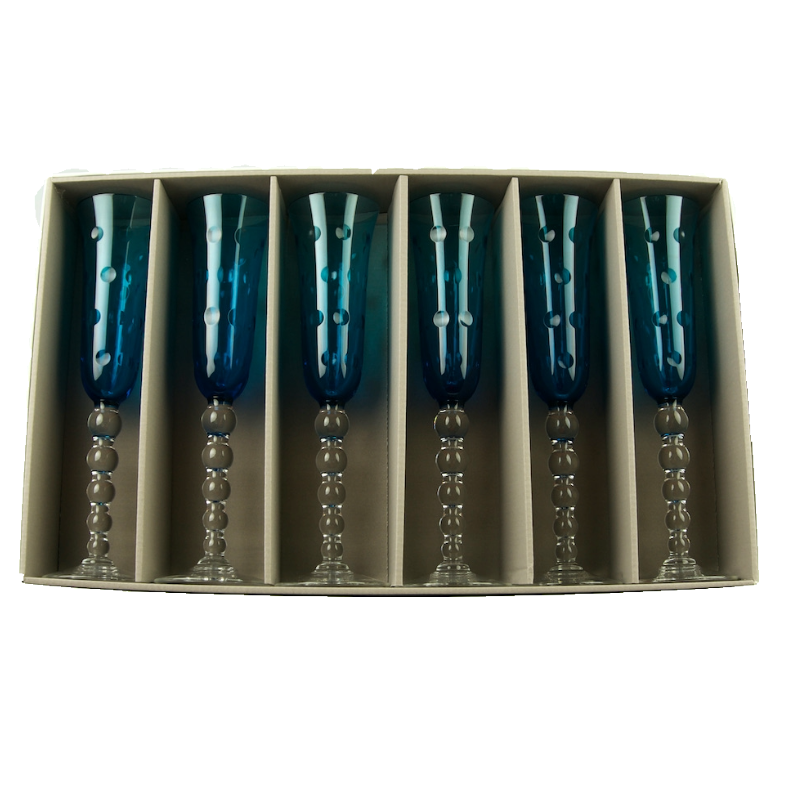 Set van 6 champagneglazen, hemelsblauw in doos