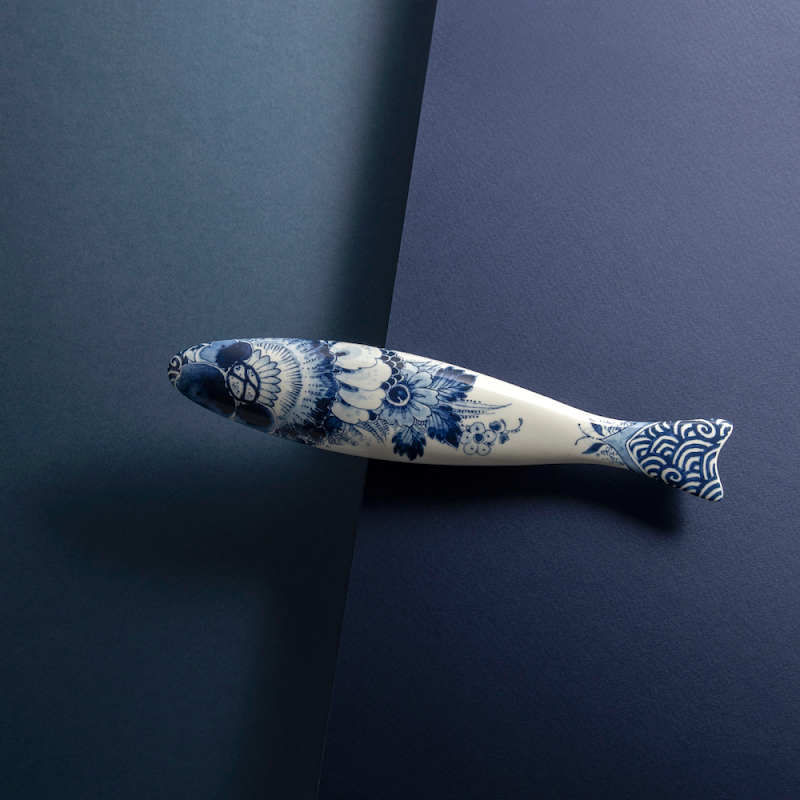 Blue Herring is een unieke collectie van zes keramische haringen, elk met een eigen, prachtige Delfts Blauwe decoratie. De haring is ontworpen als eyecatcher aan de muur. Royal Delft introduceert deze serie in 2024, in samenwerking met het ontwerp duo Koens en Middelkoop. Elk ontwerp in deze serie, waaronder Peacock Scales, Dragon Fly Flower, Mesdag’s Fleet, Flower Scales, Art Deco en Flower Bed, vertelt een eigen verhaal en combineert de Hollandse haringtraditie met prachtig Delfts Blauw artwork. De haringen kunnen decoratief aan de muur worden gehangen met behulp van een kurk en een spijker.