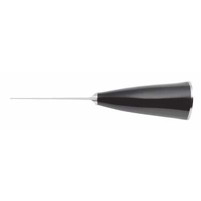 Het lemmet is gemaakt van gehard staal. Het heft is gemaakt van de gepolijste zwarte punt van een Buffelhoorn en de gladde stalen onderkant zorgt ervoor dat het mesje stevig staat.