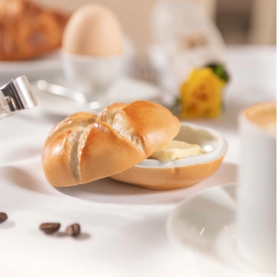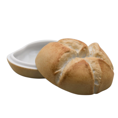 De bijzonder realistisch ogende Weense **"Kaisersemmel"** is een grappige tafeldecoratie, maar kan ook gebruikt worden als botervlootje of confituurschaaltje.