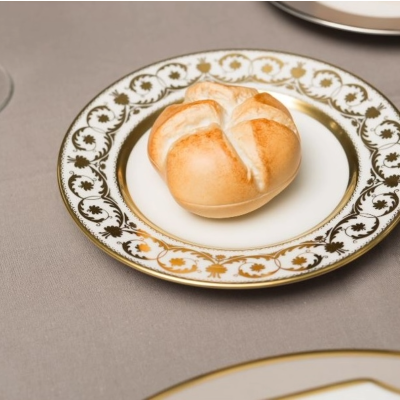 Keizer Franz Joseph I moest natuurlijk ook ontbijten om zijn dag goed te beginnen. De keizer had een bijzondere voorliefde voor **resche Handsemmeln**. Dit fijne Weense witte broodje werd op zijn verjaardag, 18 augustus, in alle steden uitgedeeld. Als speelse decoratie werden broodjes en ander gebak van porselein gemaakt voor de keizerlijke tafel. Augarten heeft deze traditie nieuw leven ingeblazen en de bedrieglijk echte **KAISERSEMMEL** als porseleinen doosje aan het assortiment toegevoegd.