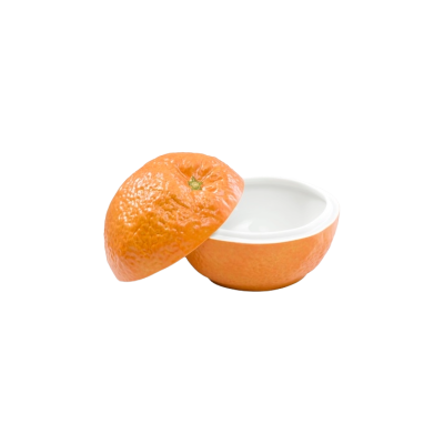 Het porseleinen doosje in de vorm van een sinaasappel is een charmant en origineel decoratief stuk dat zowel esthetisch aantrekkelijk als functioneel is.