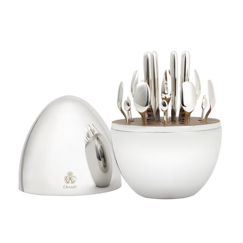 Zwaar verzilverd 24 delig Party bestek in roestvrijstalen opberg 'ei'