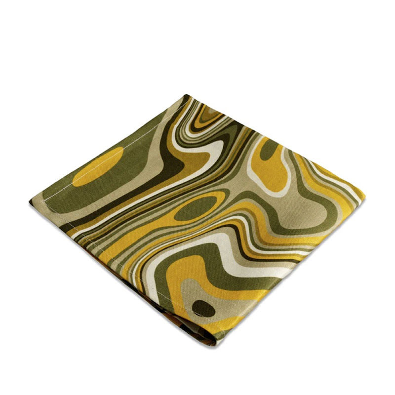 Servet Waves Olijfgroen/oker, set van 4 - Tafellinnen 'Sateen' by L'Objet aantal