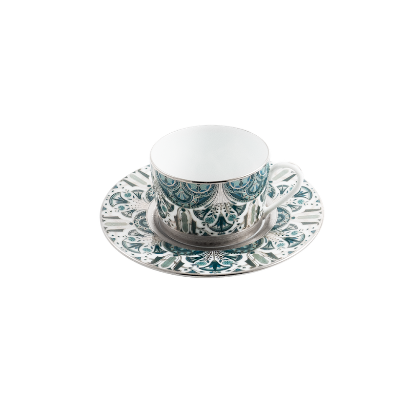 Theekop en schotel, set van 2 - "Reves du Nil" Platine by Haviland aantal