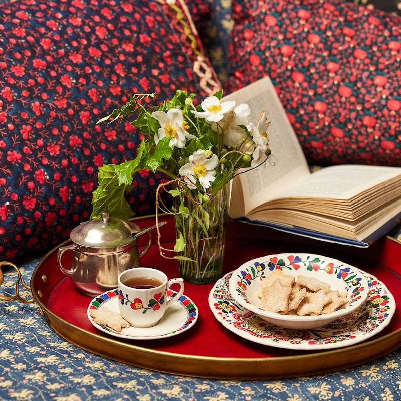 Nathalie Farman - Farma ontwerpt textiel met folkloristische kleuren en motieven. In Chance Folle speelt het klavertje vier een hoofdrol