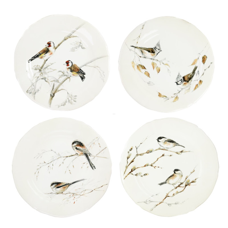 Dessert/ontbijtbord, set van 4 assorti, in geschenkverpakking. - "Les Oiseaux de la Fôret" by Gien aantal