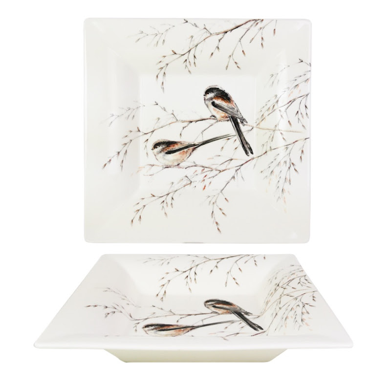 Vierkant schaaltje diep groot, in geschenkverpakking. - "Les Oiseaux de la Fôret" by Gien aantal