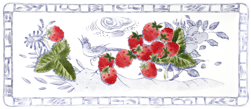 Cakeschaal rechthoekig in geschenkverpakking - "Oiseau Bleu Fruits" by Gien aantal