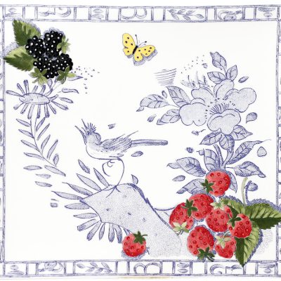 Vierkante schaal plat groot in geschenkverpakking - "Oiseau Bleu Fruits" by Gien aantal