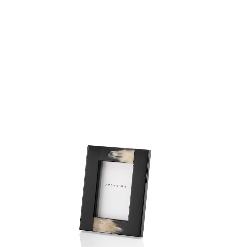 Handgemaakte fotolijst uit hout, afgewerkt met zwart glanzend lakwerk met details in donker hoorn