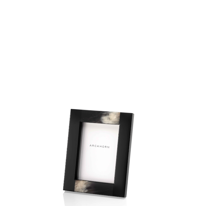 Handgemaakte fotolijst uit hout, afgewerkt met zwart glanzend lakwerk met details in donker hoorn