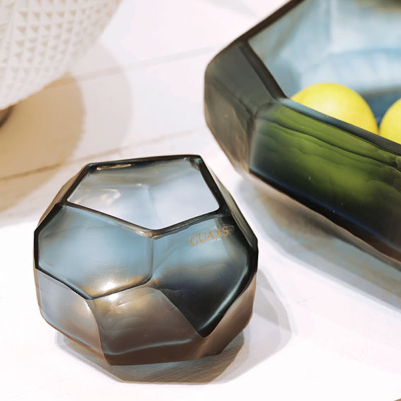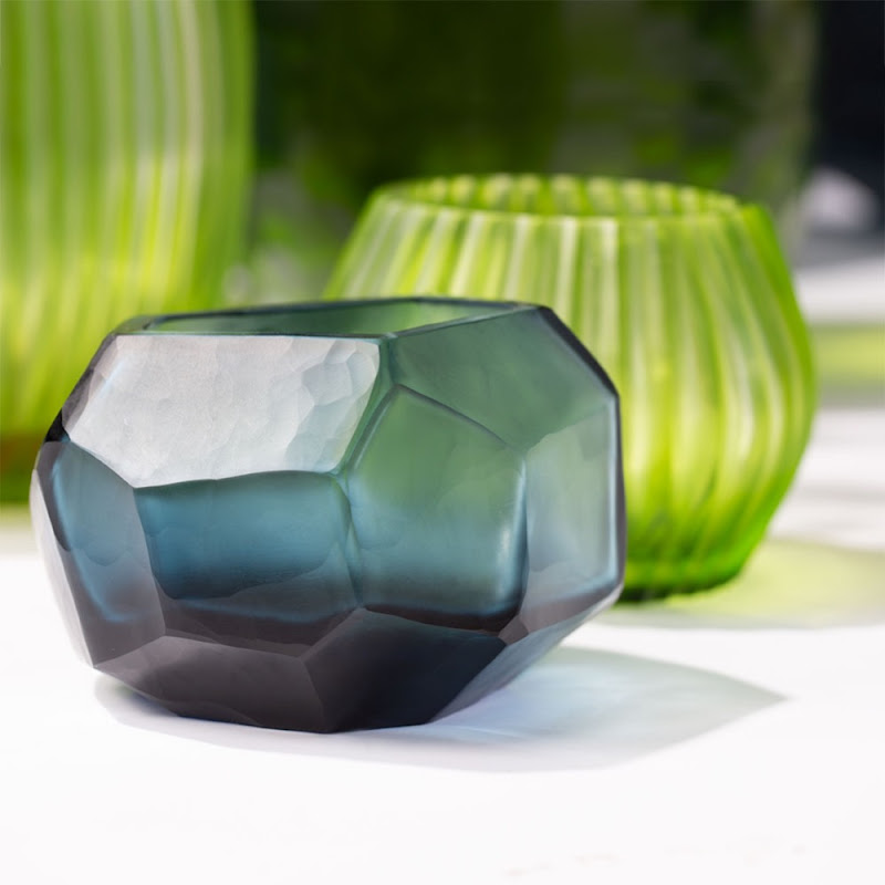 Glazen waxinehouders in de kleuren Indigo en Smoke Grey