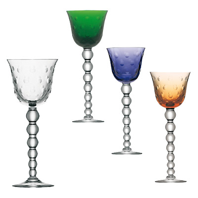 Roemers en champagneflutes leverbaar in gekleurd kristal