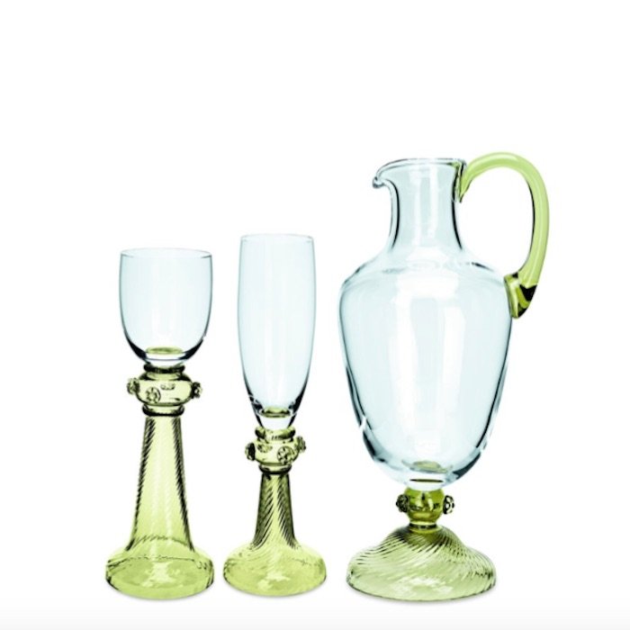 Serie kristallen wijn-roemer glazen met klassiek groen hol geblazen been