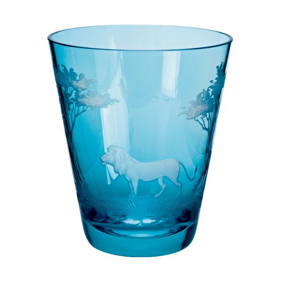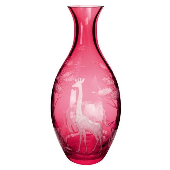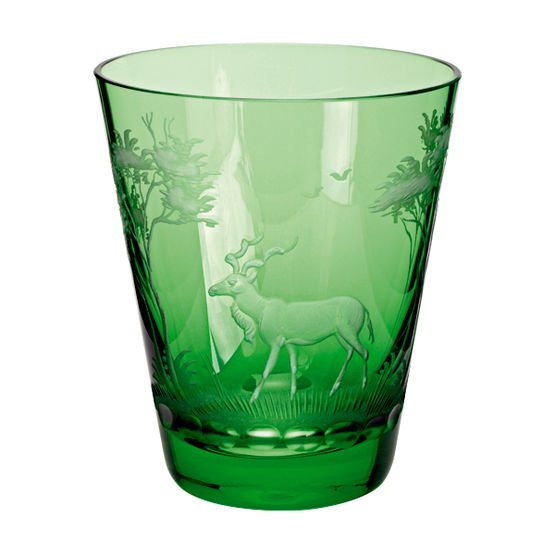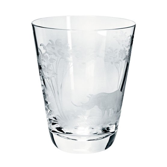 Kristallen glaswerk in Überfang techniek (2 lagen glas-techniek) met hand gravure van Afrikaans wild