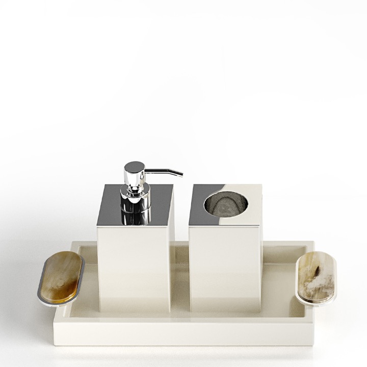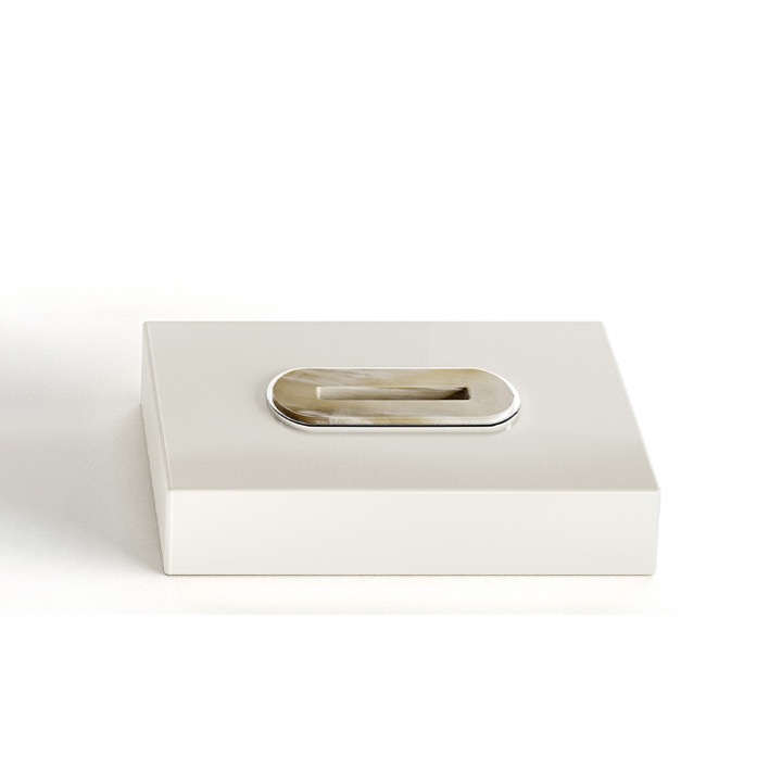 | Gelakt houten blaadje met handgrepen van hoorn en verchroomd messing