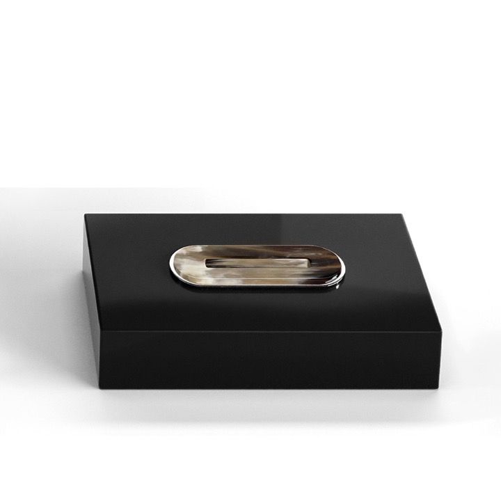 | Gelakt houten blaadje met handgrepen van hoorn en verchroomd messing