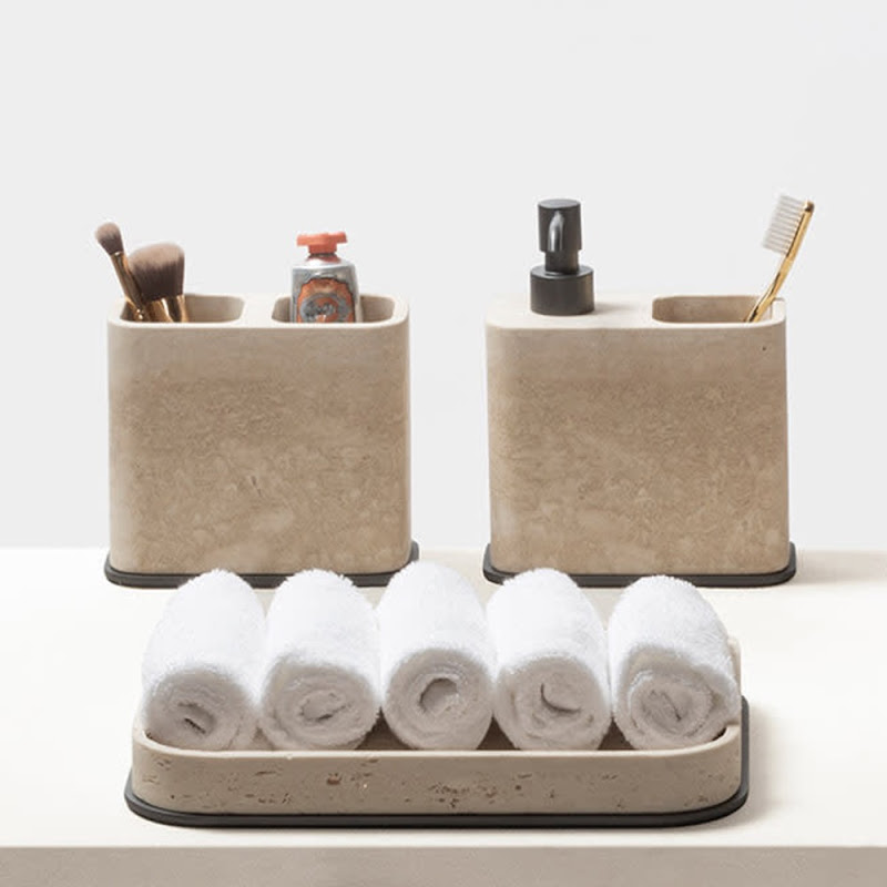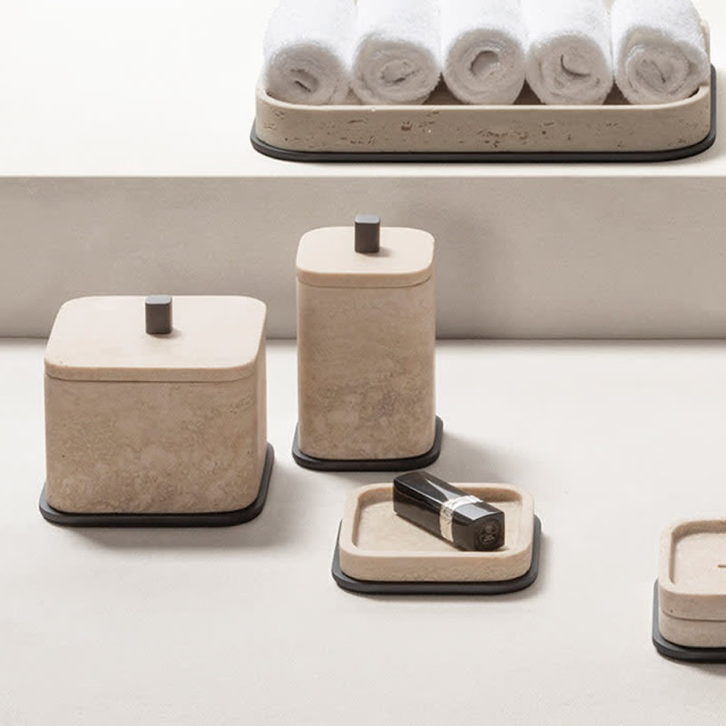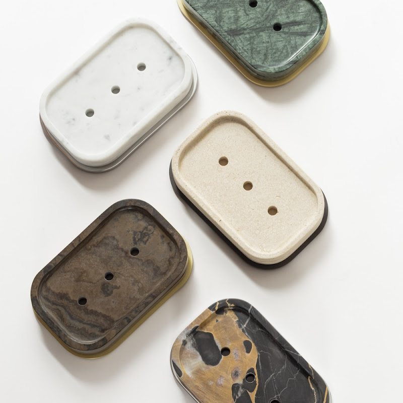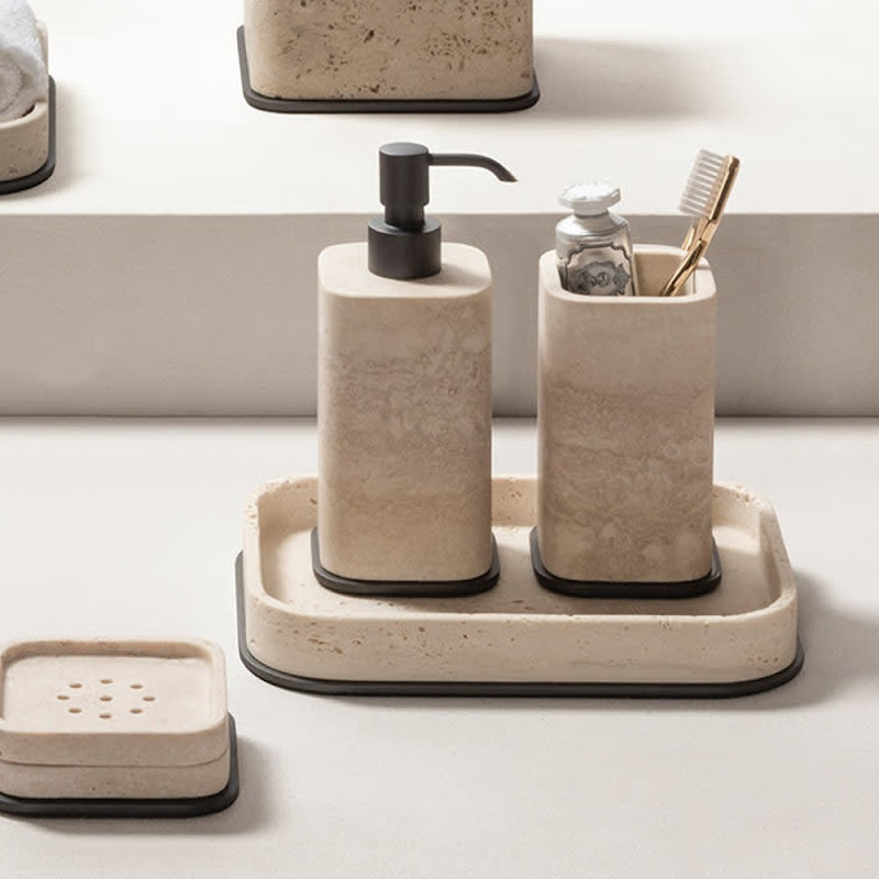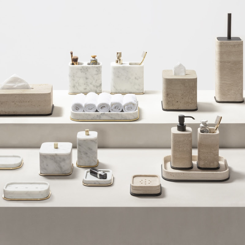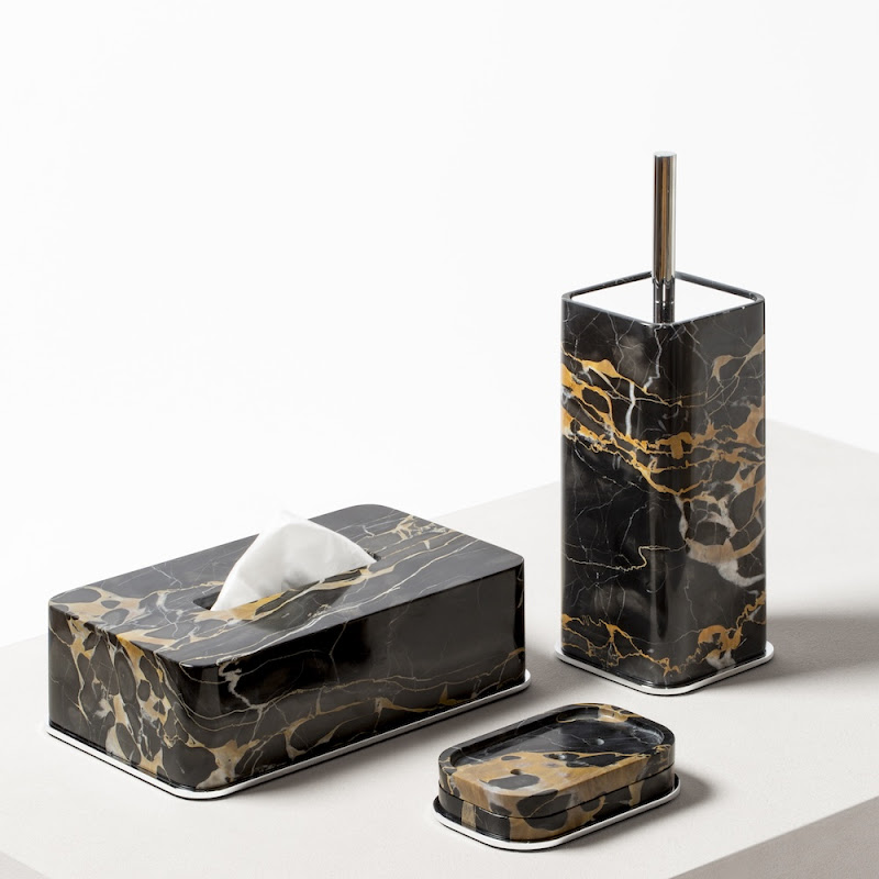 "Polo" marmeren badkamer accessoires afgewerkt met metaal en een antislip, waterbestendige rubberen onderkant.