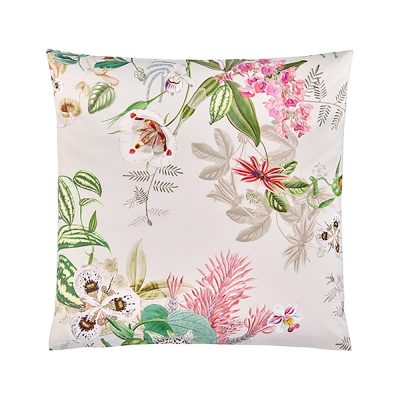 Laat je betoveren door de delicate schoonheid van roze orchideeën, hartstochtelijke passiebloemen en majestueuze irissen die schitteren op een bed van zacht zand. Kunstzinnige penseelstreken en verfijnde schaduwwerking geven dit ontwerp een nieuwe dimensie. De slimme rangschikking van motieven en het stijlvolle kleurenpalet geven het een onvergelijkbare eigentijdse charme.