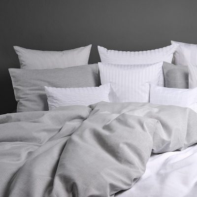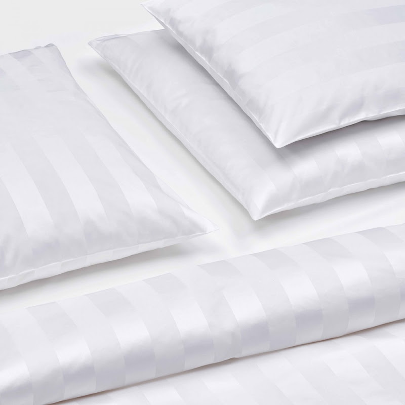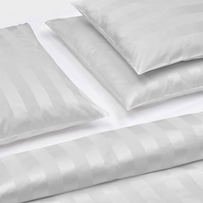 Dit beddengoed straalt pure elegantie uit met zijn klassieke design en moderne urban flair. De brede ton-sur-ton verticale strepen spelen met het licht en creëren een subtiel, sprankelend effect. Dankzij de unieke combinatie van satijn- en platbindingen ontstaat een verfijnde glans die elke slaapkamer een vleugje glamour geeft