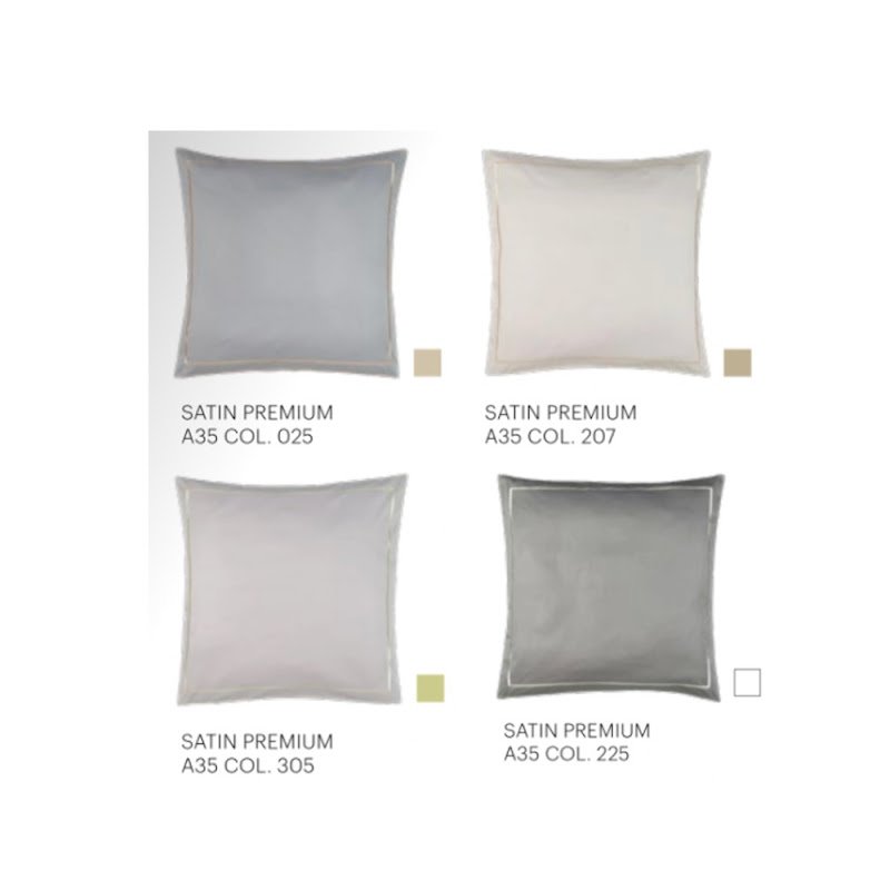 Satin Premium ademt moderne elegantie en tijdloze verfijning. De geborduurde dubbele biezen, verkrijgbaar in 32 verschillende kleuren, geven het bedlinnen een luxueuze en stijlvolle uitstraling. Behalve op wit, kunnen de dubbele biezen ook worden geborduurd op de volgende 4 basiskleuren: