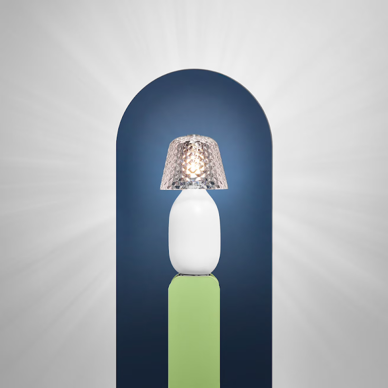 De lamp is draadloos en oplaadbaar en past in elke omgeving.