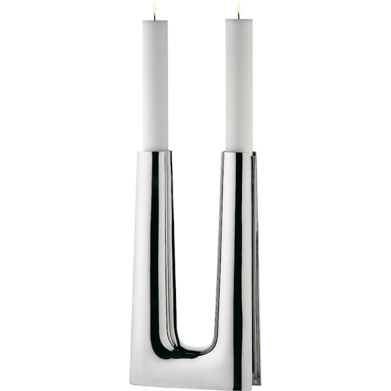 Deze grote dubbele kandelaar is vanwege het strakke, maar elegante ontwerp een absolute blikvanger in ieder interieur.