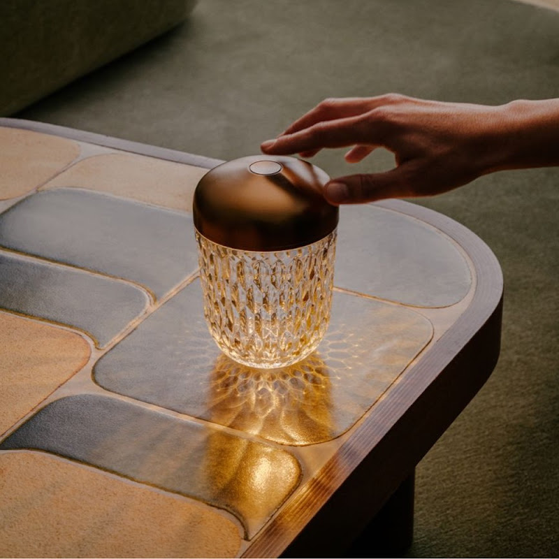 Mondgeblazen, handgeslepen kristallen LED lampje, met aanraakschakelaar