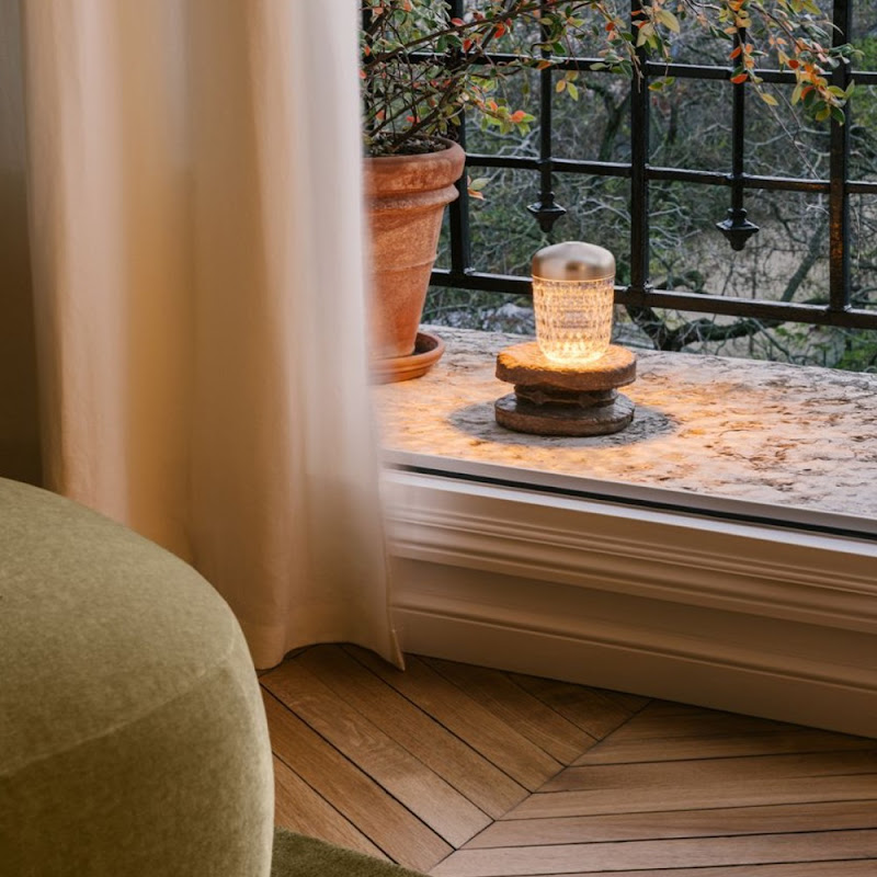 Oplaadbaar, 2 lichtkleuren ( licht warm wit en extra warm wit ) en dimbaar naar 3 licht niveaus.