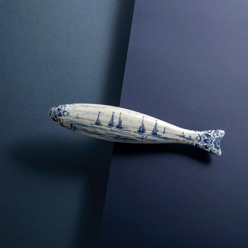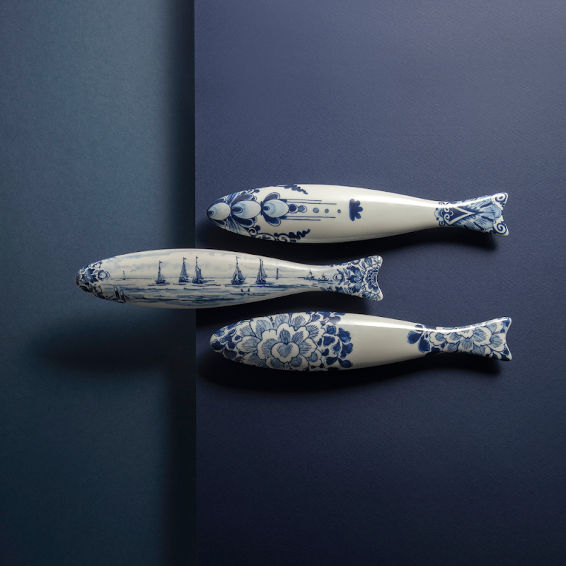 Blue Herring is een unieke collectie van zes keramische haringen, elk met een eigen, prachtige Delfts Blauwe decoratie. De haring is ontworpen als eyecatcher aan de muur. Royal Delft introduceert deze serie in 2024, in samenwerking met het ontwerp duo Koens en Middelkoop. Elk ontwerp in deze serie, waaronder Peacock Scales, Dragon Fly Flower, Mesdag’s Fleet, Flower Scales, Art Deco en Flower Bed, vertelt een eigen verhaal en combineert de Hollandse haringtraditie met prachtig Delfts Blauw artwork. De haringen kunnen decoratief aan de muur worden gehangen met behulp van een kurk en een spijker.