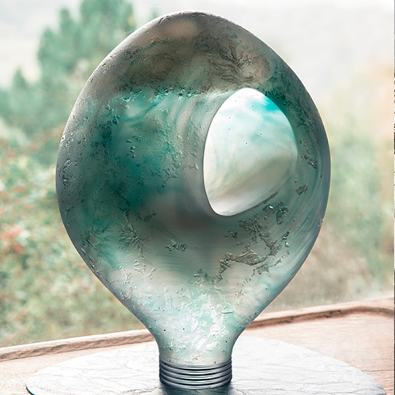 Nogmaals verhit in de oven smelt het kristal en vult de gipsen vorm. Aangezien het proces niet volledig te beheersen is, is elk object UNIEK.