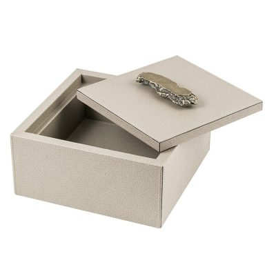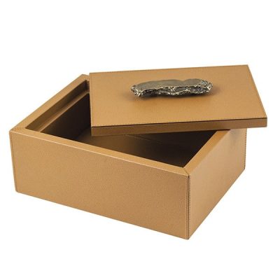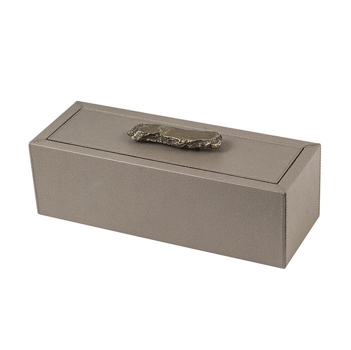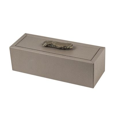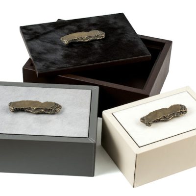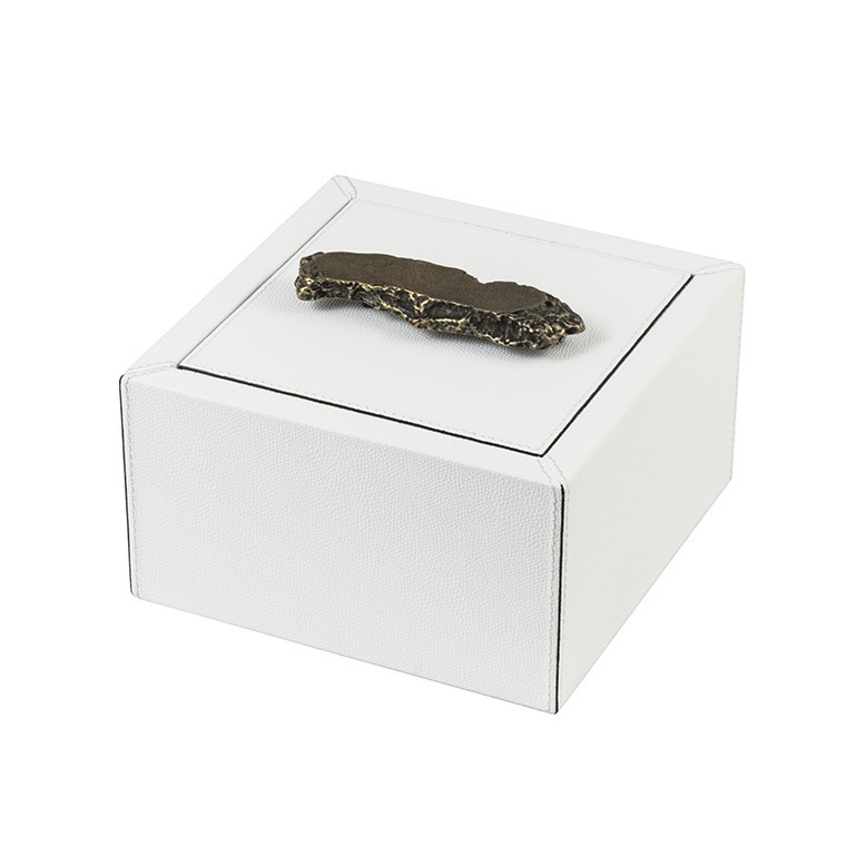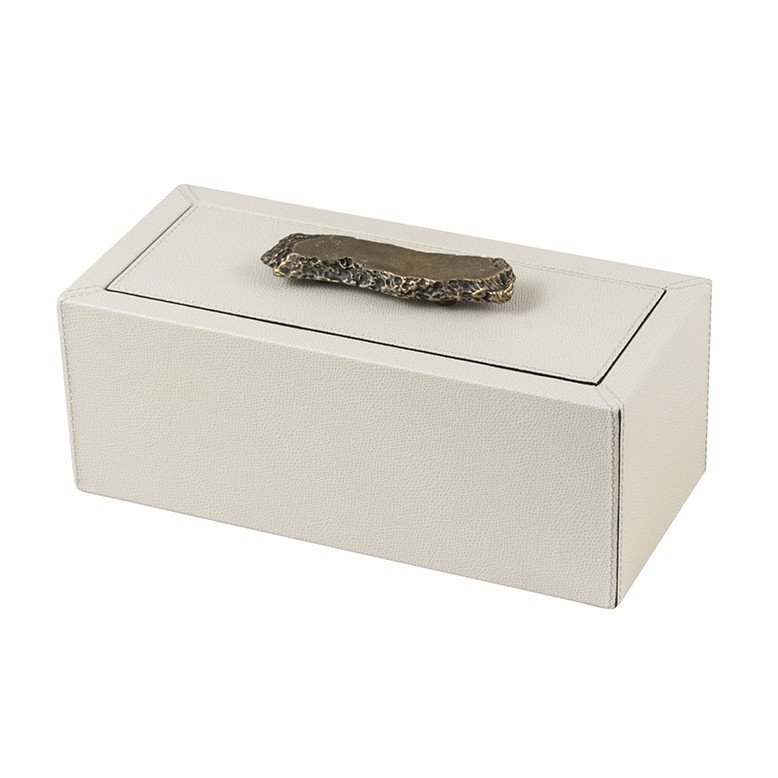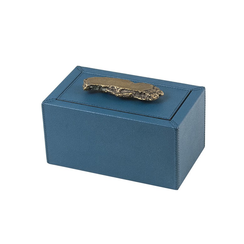 De doos is leverbaar in meerdere maten. Het leer is verkrijgbaar in diverse afwerkingen en vele kleuren.